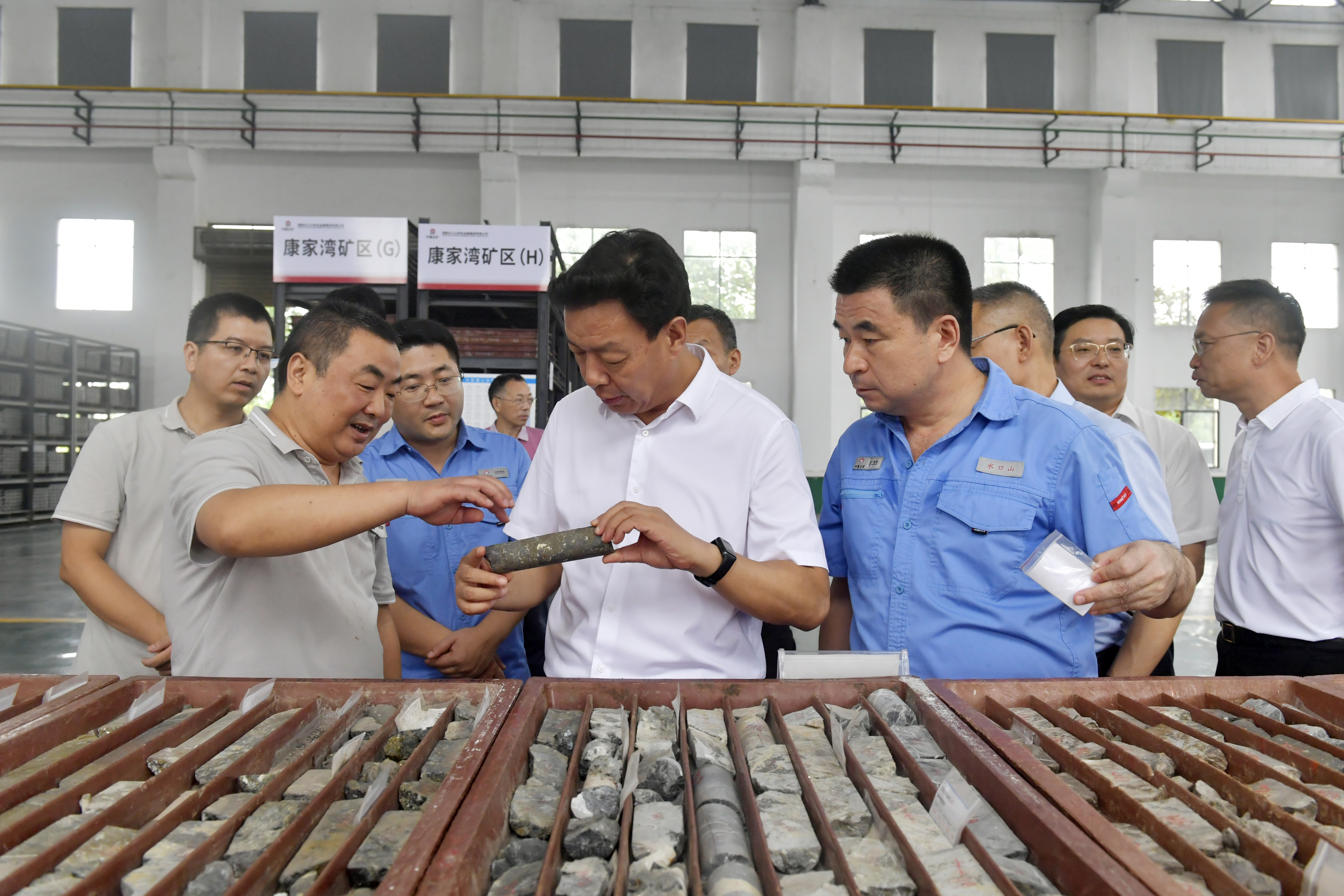 陈得信在水口山公司岩心库查看岩心样本